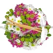 Волшебная корзинка с нежными хризантемами создаст романтичное настроение. Чудесная декоративная бабочка на ручке является стильным дополнением этого флористического шедевра. Сочетание белых, фиолетовых и зеленых оттенков делают корзинку отличным подарком к любому поводу — будь это признание в любви или знак внимания для дорогой мамы. Корзинка украсит интерьер и будет долго радовать вас своим изысканным видом.