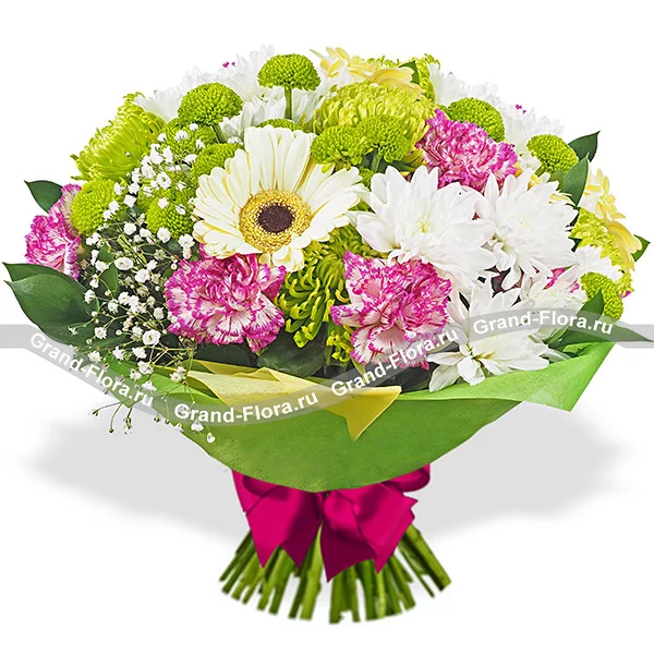 Зеленая долина - букет из гербер, хризантемы и гвоздики